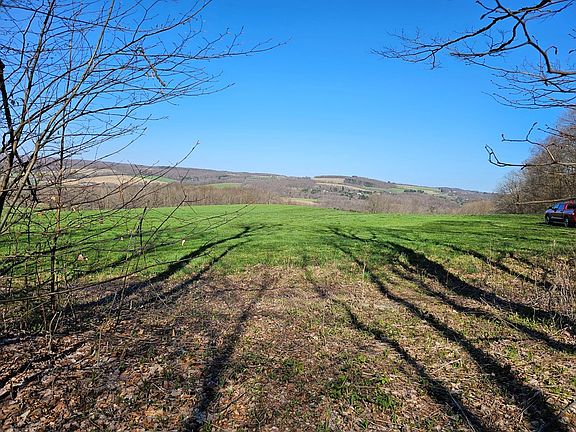 Approx. 25 acres of tillable land on the west side of the property currently planted in hay grass. 15 acres on the east side planted in corn. Remaining acreage is wooded. As you climb the gentle hillside, the views increase and become more dramatic towards the middle of the property where the land plateaus and levels out with a small, wooded patch on the right side that has a nice hard maple stand and some locust. Great location for a private home or cabin. The upper field feels like you are on top of the world with incredible panoramic views to the north and south, and to the east to catch the sunrises. The woods on top of the hill offer a mix of hardwoods and more hard maple with a small run-off stream crossing through the property. Consists mostly of Langford Channery Silt loam.