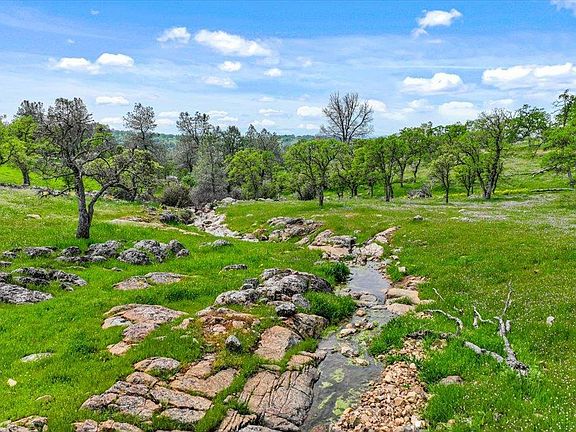 Are you looking for 165 acres off grid with a private and serene setting at the base of the Sierra Foothills? Well, look no further! This gorgeous property is loaded with oak and pine trees, panoramic views, rock outcroppings and South Gulch creek running through it. Improvements include new access road winding through the property to a beautiful building site, two wells, four water storage tanks, 2 bedroom septic system installed, solar panels for 1 well and 50 amp power RV hookup, trailer with solar powered satellite for wifi, 45X30 metal carport, exterior bathroom and storage sheds. Added bonus is a 40 foot Fleetwood turbo diesel pusher RV with Cummins engine in excellent condition and enclosed deck all located under the metal carport. This setup provides you a place with all the comforts of home while you build, hunt, gold pan, watch wildlife and enjoy nature in all its glory.