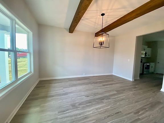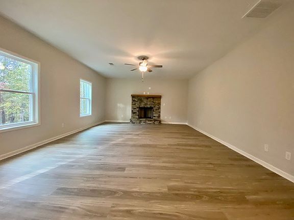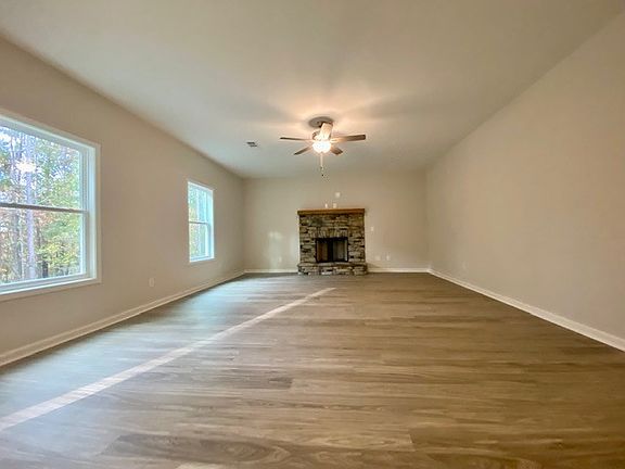 SPENCER PLAN - Enter into Foyer leading to Dining Room featuring stained beams and farmhouse light fixture. Open Family Room/Kitchen. Gorgeous Kitchen features shaker style cabinets, quartz counters, tile backsplash, stainless: range/oven, dishwasher, & micro hood. Large Pantry. Family Room features fireplace with stone surround and rough sewn cedar mantle! Upstairs leads to spacious Owner's Suite. Owner's Bath has luxurious tiled shower, garden tub with tile surround, and double vanity w/quartz counters. Three guest rooms, hallway bathroom, and laundry room are also found on the second level. LVP flooring throughout the main level, Smooth Ceilings, Ceiling Fan in Family Room and Owner's Suite. Each guest room is pre-wired for future ceiling fan. Covered Rear Patio. JUST MINUTES FROM LONG BRIDGE FOR ACCESS TO LAKE HARDING!