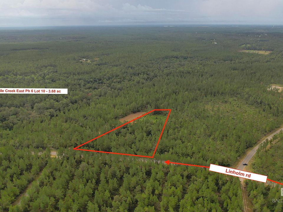 Eightmile Creek East Phase 6, Lot 10 - 3.68 acres Excellent access, off from Interstate 10, North of County rd 64, turn onto Linholm road. Parcel has 401 ft of road frontage. Exceptional location, only 40 minutes away from Mobile / Pensacola. Unzoned, Water is available on the street - Tap water and Septic installation included in price. Owner Financing - Available. Residential and/or Limited Commercial - OK. Restrictions apply. Nicely wooded lot, multiple potential home site areas and/or private recreational property. The fast-growing area and upcoming large projects include Grand River Motorsport Park, Mega Site - a world leader aluminum solutions provider.