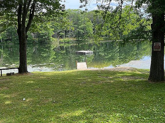 Gorgeous cleared and flat lot in lake community. Driveway permit secured and available. Access to private beach and lake, no engines so quiet and clean for canoes, rowboats, paddle-boarding, swimming. No formal HOA, no fees. A rare find. Brokers protected.