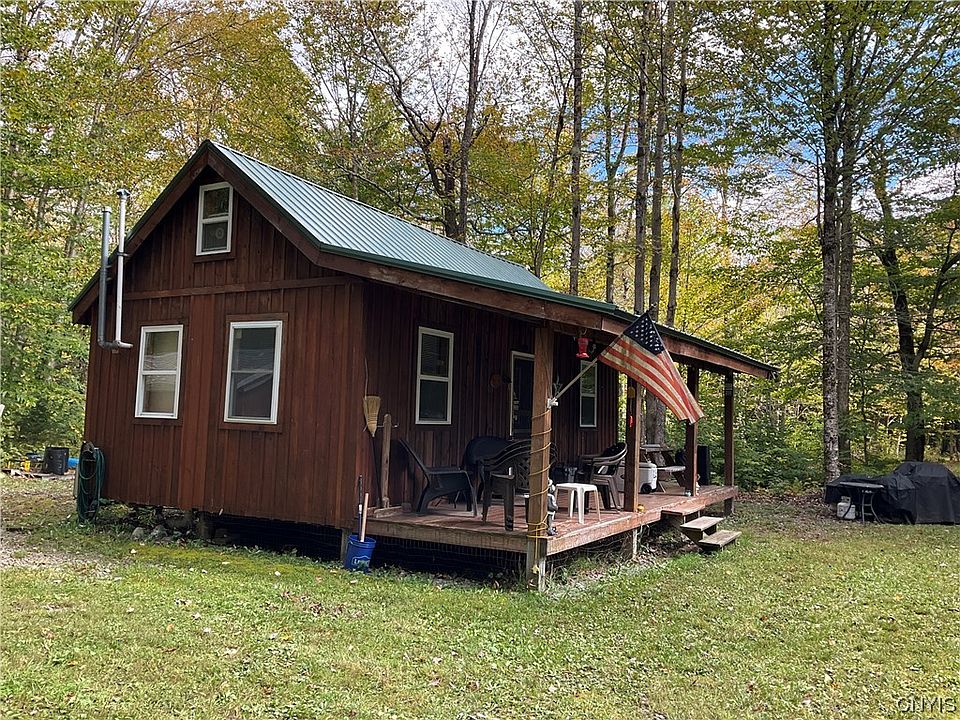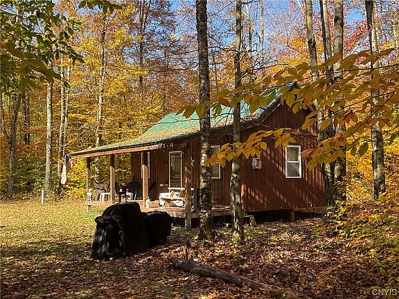 This property offers 13.56 acres bordering Big Brook State Forest with a 16X28 secluded cabin built in 2002. The cabin has well, septic and is powered by a generator or bank of batteries. The propane tank, which is not leased, provides gas to the fireplace, hot water heater and runs the propane refrigerator. All furnishings will convey with sale except some of the personal belongings. Inside is an open living room and kitchen with a gas fireplace, one bedroom and a full bath containing the utilities. Loft has two twin beds. Outside is a cozy porch to relax and enjoy the outdoors. While exploring the property you will see plenty of wildlife sign and a short hike through the state land will bring you to a private pond. This property is off Houlahan Rd (a main snowmobile trail) in the Lost Ridge Subdivision. Houlahan Road is a seasonal town-maintained road that is a well-known snowmobile trail in the wintertime. Trails lead to anywhere you want to go in the North Country as you are minutes from 46 Corners (the main intersection for snowmobilers).