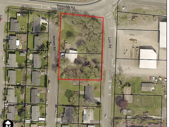 Corner acre zoned LBD (limited business district) As per City this site is suited for commercial or up to 4 single family lots, 3 triplex lots or 2 fourplex lots. Rentals at a premium & demand is very high. Much of the st frontage improvements done including sidewalks & water/sewer infrastructure. Street frontage on 3 sides inc Reynolds Rd, Lum Rd & Jensen St. Includes an old but habitable doublewide that can be rented to offset holding costs while city planning/engineering/approvals get done.
