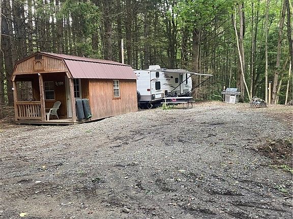 Rural camping/recreational 1.65 Acre Lot ( per survey 10/22) with a POND, CAMPER, AMISH BUILT SHED, ELECTRIC AND HIGHSPEED INTERNET! The electric service is newly installed and has sub panels for the camper and shed. The camper is a 2015 Gulf Stream Amerilite LE, and is in excellent condition. The shed is also in excellent shape! The pond is approximately 1/4 of an Acre in size and 7' deep. Located just minutes from the Town,Village, and Lake of Cuba, there's always something to do or see! More outdoor public recreational opportunities are available at the Hanging Bog Wildlife Managment Area to the North and Coyle Hill State Forest to the East.