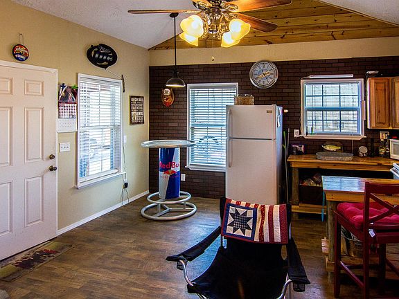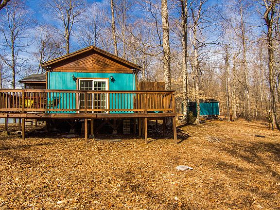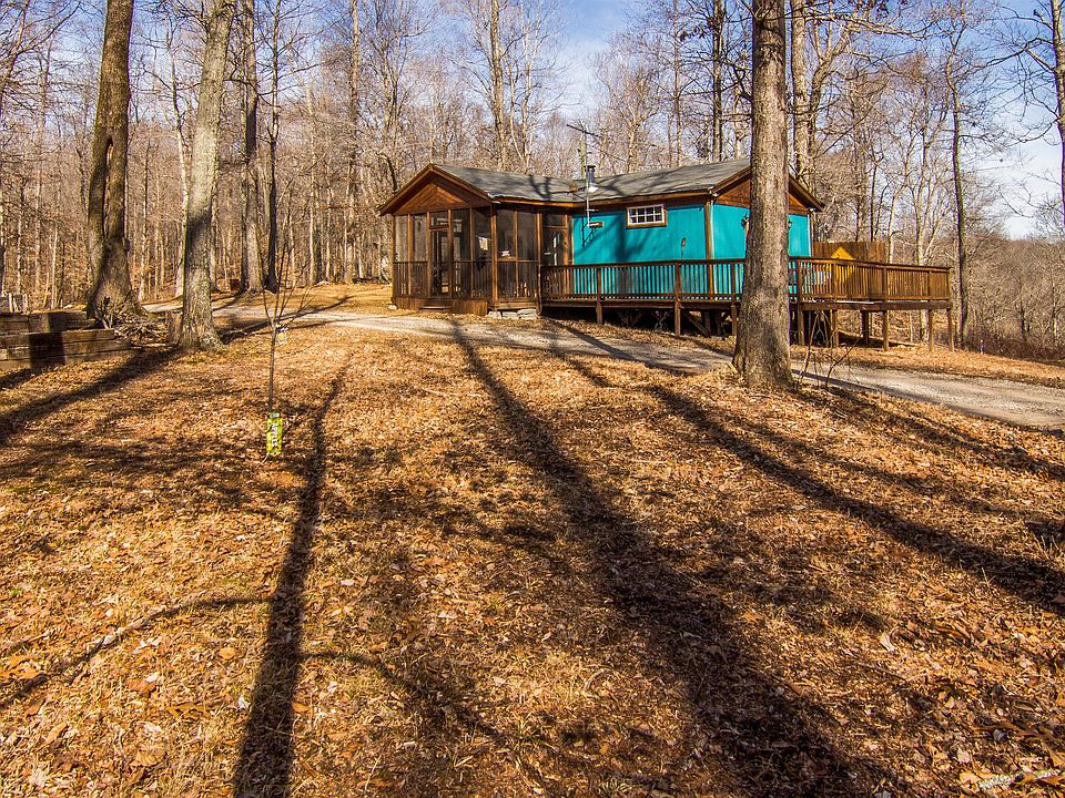Rustic getaway for hunter or musician! 19.47 wooded rolling acres, creek, 32'x18' ft.1 bd. cabin w/wood burning fp, storage shed & electricity. No plumbing. City water available at start of driveway. Cabin close to neighbors. Build further into acreage! Land loan or cash. Won't go FHA, VA or Conventional.
