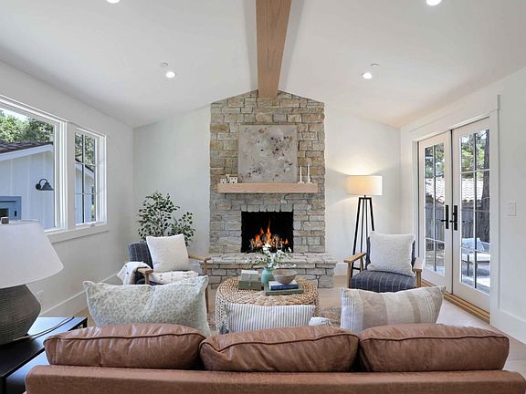 The community of Carmel-by-the-Sea attracts visitors from all over the world; they walk up and down fabled oak-lined streets, perusing the art galleries and shops and gasping in amazement that such magic and beauty is still possible in the 21st century. Claim your own piece of this sublimity while enjoying all the perks of living in a brand-new home. Fresh off a meticulous, down-to-the-studs remodel that expanded the home's original footprint to include a new ground level wing and second story primary suite, this residence sits just blocks away from Carmel Plaza, Sunset Center, luxury boutiques, and fine restaurants of all varieties. Tune into birdsong and wind in the trees as you step up to the entry. In the living room, big windows cast sunlight onto white oak floors, and a rock fireplace rises to meet the top of a vaulted ceiling. The adjacent open kitchen exudes cool serenity, with new panel-ready appliances and a six-burner stainless steel gas range and hood. A laundry room, two lovely bedrooms, and two full bathrooms round out the main level, while the primary suite comprises the entire second floor. Gaze out at quintessential Carmel impressions: twisting oaks, soaring conifers, terracotta, dappled sunshine, and the distant mountainside reminding you exactly where you are.