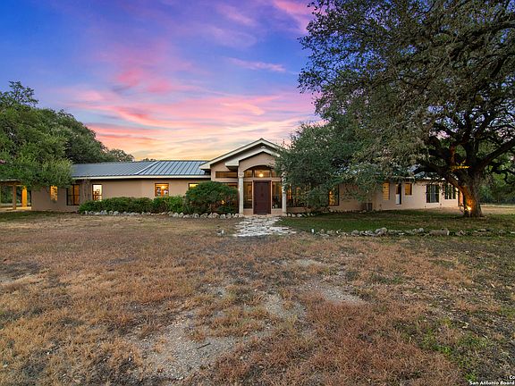 Experience the best of both worlds on this stunning 44-acre property, offering peace, privacy, and natural beauty-all with quick access to San Antonio, Austin, San Marcos, and New Braunfels. This versatile estate blends rural tranquility with proximity to major urban centers. The home is constructed with a steel frame and finished in stucco, designed to maximize natural light throughout the interior. Mature heritage oak trees surround the property, offering shade and privacy, while the landscape includes open pastures and gently rolling terrain. There are four separate water sources on the property, including a private well and water storage systems, providing a reliable and sustainable water supply. Additional features include a barn, fenced pastures, and a private shooting range. One of the pastures contains native Texas plant species, some estimated to be over 200 years old, which have been studied and documented by Texas A&M AgriLife. The property also holds a wildlife exemption, supported in part by the wide variety of birds and bats that call the area home-adding to the rich biodiversity and natural charm of the land. This property offers a rare opportunity to own a large, well-equipped tract of land with ecological significance and quick access to surrounding cities.