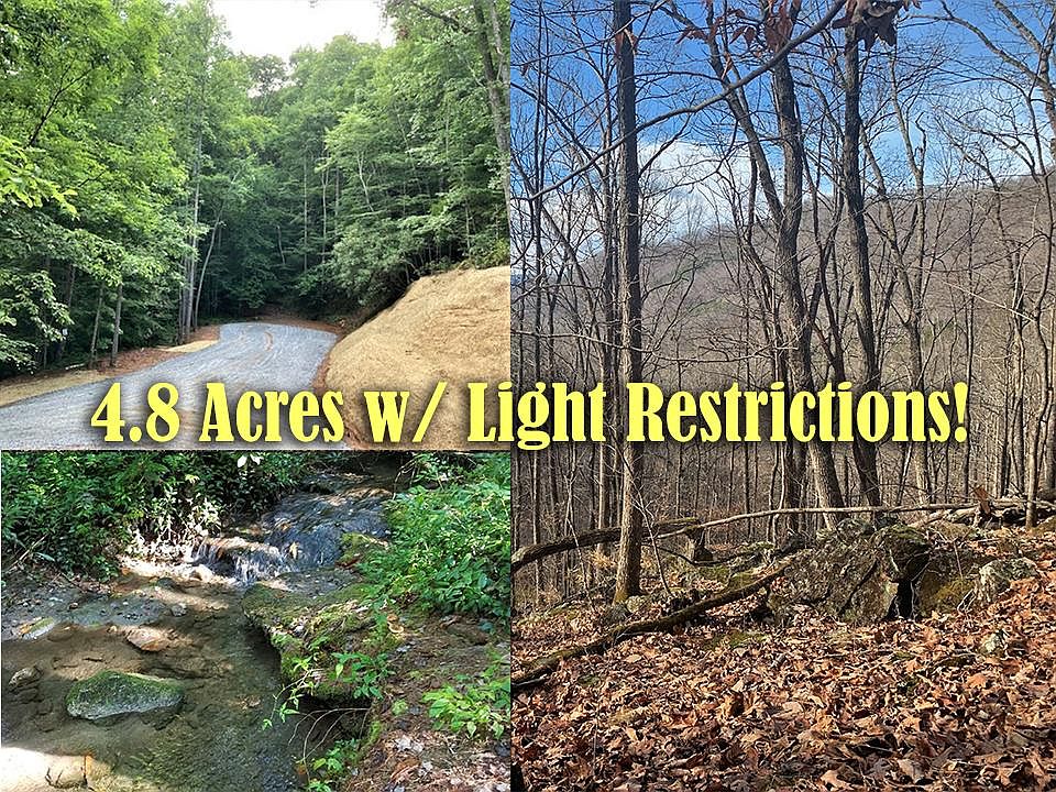 Dreaming of building your mountain getaway cabin or full-time homestead on private acreage? Be certain to view this exceptional mountain parcel, which has the SEPTIC INSTALLED already for you! Almost 5 ACRES of picturesque, lightly-wooded land with winter views and wonderful year-round view potential with some clearing/trimming. Situated in the highly desirable Cowee Valley area of Franklin, NC, this property lays very nicely and has a great homesite area choices for your future mountain home. There is a wonderful driveway/RV SPOT recently graded for you! Very light restrictions protect your investment - 800 square-foot minimum, no mobile homes, TRAVEL TRAILERS ARE ALLOWED to be stored and you can even live in yours while you build! (Ask your agent for more details.) Rushing STREAM borders the land. You'll own three private lots that have been combined to give you 4.8 +/- acres. Old growth oaks on the land. Only about 1/3 mile of gravel to access. Close to the new Cowee Fire Dept building, the Cowee School and lots of gem mining. Truly a special property for your family!