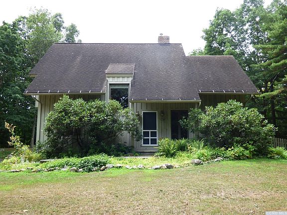 Stylish Contemporary Cape with in-ground pool on 2 secluded acres. Open kitchen/great room area on the main floor with sliders to the great out of doors. The Kitchen features include Thomasville cabinetry, apron front sink, granite counters, dishwasher and ample storage. The Living Room has a wood burning fireplace with marble surround, french doors, and a soaring vaulted ceiling with balcony landing up above. Upstairs is the master bedroom with more than ample closet space and a second well-sized bedroom as well as a spacious shared bath. Cozy reading nook overlooks the living room below. Beautiful hardwood floors throughout the house. Outside a large poolside deck overlooks a level yard with lush shrubs and flower beds. Graveled fire pit area provides year - round enjoyment.