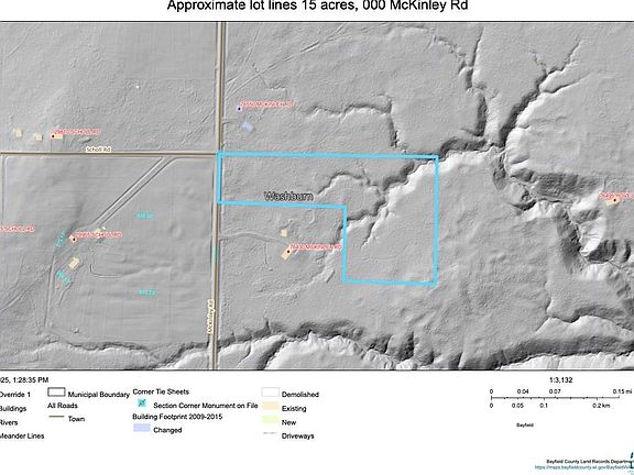 Beautiful property, with large mature trees, just a few miles outside of Washburn! Most of this proprty is fairly level and easily accessible. There are also a few drainages on the property that add some really nice terrain and scenery too. Build your dream home here, or use it as your own little getaway. Approximately 15 acres. *No current tax info because the parcel was just divided from another parcel in 2024. As an estimate - at the 2024 tax mill rate of 0.012033371, if the assessed value of the property was $89k, taxes should be about $1,070.97.
