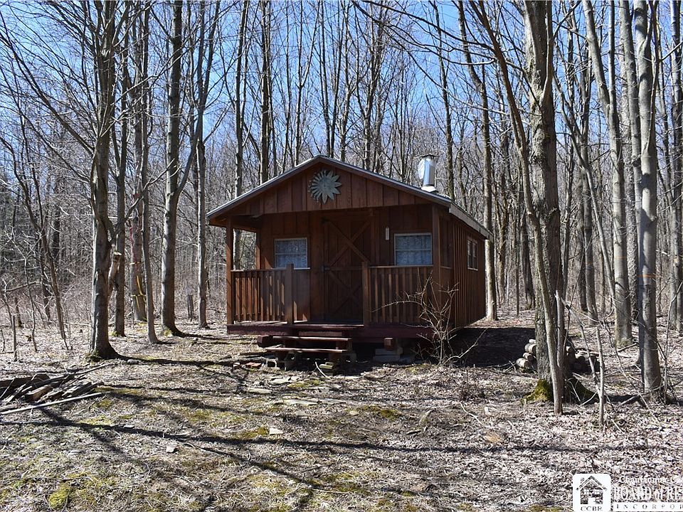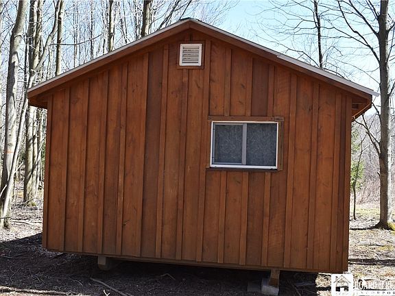 Wooded property with a mix of younger forest on the front third and older forest on the back two-thirds of the property. The forest is comprised of hard maple, soft maple, hickory, red oak, tulip poplar, hemlock, beech and more. This mix of hardwoods provides excellent mast and forage for deer and turkey alike, with bear making their way through here on occasion. There is timber value here currently that will continue to grow over time. There has been no timber harvesting done here and the forest is in excellent condition and growing well. The owners placed a 12’x20’ shed with a small covered porch on the property to use as a simple rustic camp. It is on skids so it can be moved easily. It has a woodburning stove inside to take the edge off during the cooler weather. This makes a great spot to get out of the weather while hunting and/or while building your new home or camp!