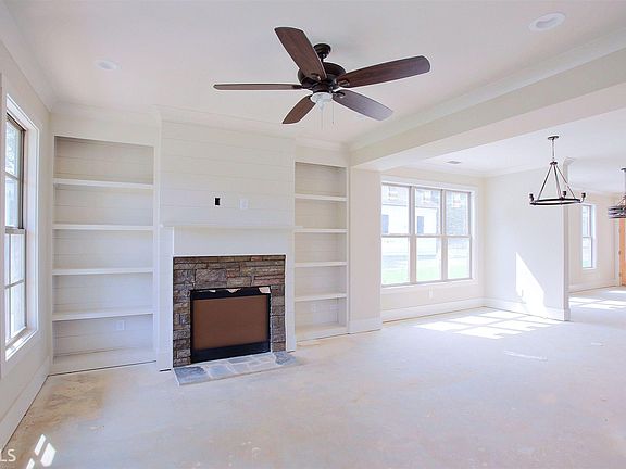 Come admire the Churchill plan in conveniently located Senoia Hollows! Just two blocks from downtown, this open plan features a living room with stone surround fireplace and custom mantle, built in cabinetry, and shiplap accents. Kitchen features high-end Bosch appliances with upgraded cabinets and contrasting countertops. Spacious master retreat with balcony for relaxing outdoors. Tile baths and Rinnai tankless water heater complete the feeling of luxury in this sought-after plan.