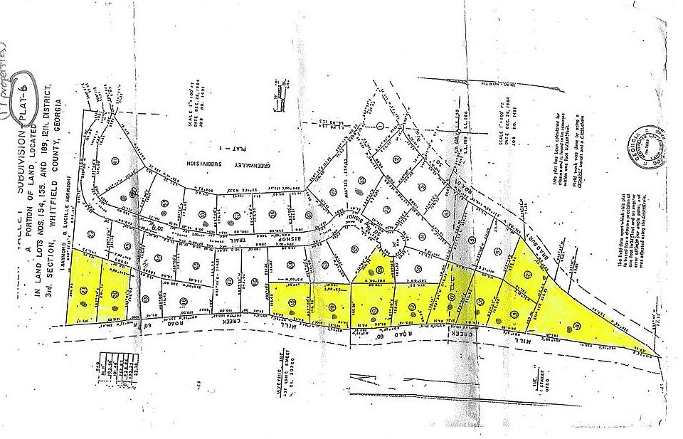Excellent opportunity to buy a group o f12 subdivision lots in an established subdivision located in a desirable area of Whitfield County, 3.3 miles from Interstate 75. All lots offered as a package, all platted and approved, city sewer available. No mobile homes, site built only, 1600 square foot minimum. Sale to include lots #7-.56 ac, #8- 1.22 ac, #9-.53 ac, #10-.53 ac, #11-.60 ac, #12-.57 ac, #13-.61 ac, #14-.59 ac, #15-.51 ac, #20-.61ac, #21-.75 ac, #29-.34 ac. Will not sell as individual lots, only as a package.
