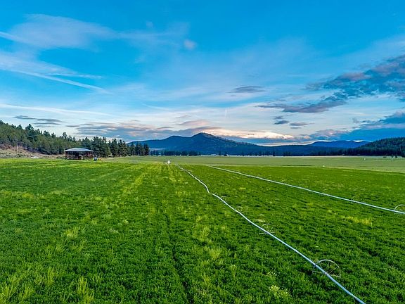 Farm with wells in Swan Lake-- 420 acres near Dairy, Oregon with private well and shared well. +/- 250 acres of farmable ground with water rights and 170 acres of timbered land with mule deer and antelope hunting and habitat. 2100 SF 3 bed/2 bath home, new domestic well, 45 x 120 x 22 pole hay barn, 9 tower pivot, buried mainline, 4 wheel lines, flood irrigation and new stock water well. Currently growing organic Alfalfa and orchard grass and under lease until December 31, 2020.