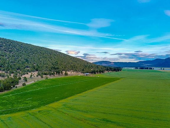 Farm with wells in Swan Lake-- 420 acres near Dairy, Oregon with private well and shared well. +/- 250 acres of farmable ground with water rights and 170 acres of timbered land with mule deer and antelope hunting and habitat. 2100 SF 3 bed/2 bath home, new domestic well, 45 x 120 x 22 pole hay barn, 9 tower pivot, buried mainline, 4 wheel lines, flood irrigation and new stock water well. Currently growing organic Alfalfa and orchard grass.