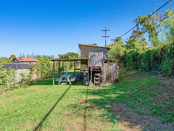 A unique and affordable piece of land with significant Maui history, is now on the market in Haiku. The Railroad once ran across this long narrow 3/4 acre property. The Kahului and Wailuku Railroad opened in 1879, and the railroad line was extended from Kahului into Haiku in 1913. It was the last operating railroad in the state of Hawaii and was decommissioned in 1966. The Mopua entrance portion of this property has a 200 sq ft multi use structure. Relax and daydream about possibilities in the attached covered picnic area. This easily accessible area is a level building site with room for fruit trees and water catchment. Electricity is available. Seller has approved building permit for an Ag storage building of over 400 square feet that will fit within the property set backs. Mopua Rd crosses the lower portion of the property and the Sellers have been in contact with Maui County Public Works about a resolution for creating an easement. Besides an attractive price, Seller is also offering financing to a qualified Buyer.