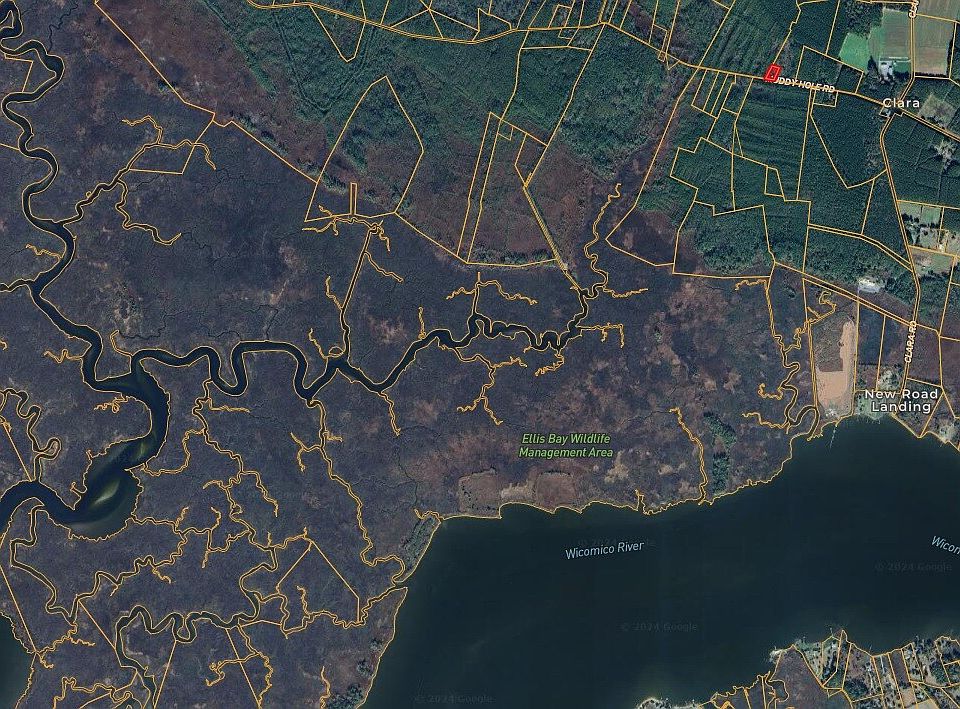 1.5+- wooded acres in proximity to the Ellis Bay Wildlife Management Area, Chesapeake Forest, and public boat ramps. A lot to park your camper for a place to stay while enjoying your recreational activities, including whitetail and turkey hunting in the area. No conservation easements.