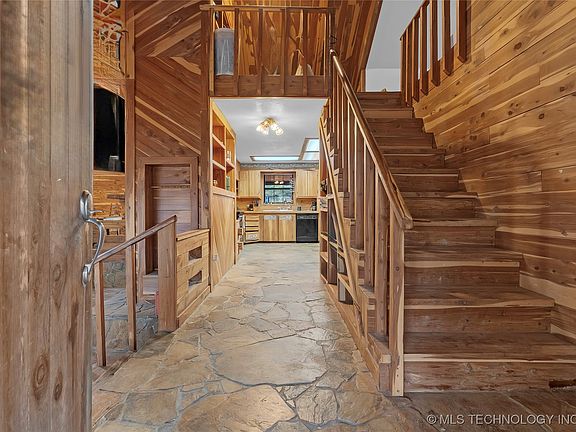 Truly one-of-a-kind custom cedar home on approximately 37 acres near Sardis Lake, offering exceptional craftsmanship, privacy, and scenic surroundings. This 2-bedroom, 2-bath home features a spacious loft and is wrapped in natural cedar throughout, complemented by distinctive rock flooring that enhances the home’s warm, lodge-style character.