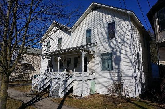 Fall Creek side by side mirror image duplex close to Ithaca Falls, schools, parks and all the other attractions of downtown Ithaca. Each side consists of a formal entry, living room, dining room, kitchen, 3 bedrooms, 1 full bath and a full basement. Hardwood floors on both levels and some natural trim. Heat, hot water and electric are both split and each side has central air. Great opportunity to live in one side and have the rent cover a portion of your expenses. In addition there is an oversized 1 car garage for storage, shop or studio. Rear yard for garden space, pets, children or more.