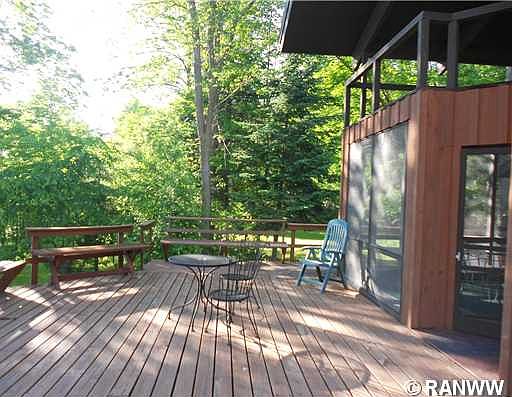 One of the rarest finds on a NW WI premier lake. Unique and architecturally designed, this custom built cedar home on Bear Lake, with a NEW 2014 roof, has the exclusiveness you desire in a pristine setting. Enjoy your privacy with 250 feet of frontage on the north end, where your views are enclosed in undeveloped county land. Between the large lake facing deck and many rooms throughout the home, you won't miss one sunset. These million dollar views can be yours for the asking price of $699,000.