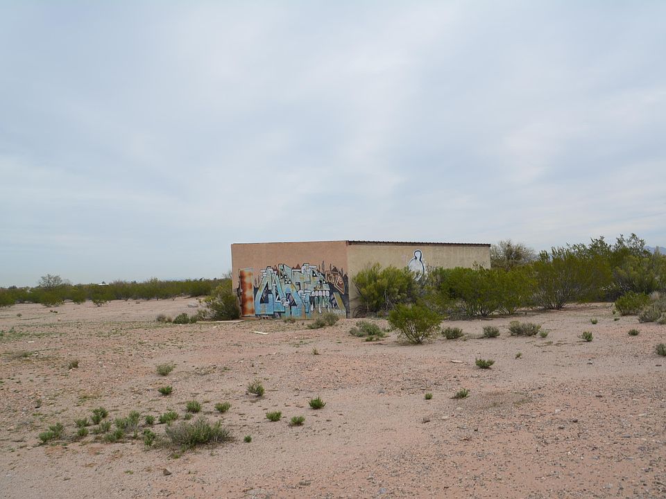 Unique 5 acre parcel with cement foundation and existing garage. Quiet country setting ready for your new mobile home. Everything being sold ''as is''. Property appears to have electric pedestal and water hook up. Horses allowed, no HOA, short drive to town. Sweeping vistas in all directions, close to Ironwood National Monument. This property needs a new address, it appears this address was unit 2 for the property adjacent to the east.