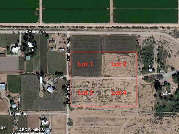 Build your dream home on this irrigated 2.5 acre lot! This property sits right on the border of San Tan Valley & is located within 2 miles of the proposed North-South Corridor extension of Freeway 24. Each lot has a water meter & irrigation head. Nearest power is in pole on Magma or adjacent on Desert Sky Rd. Animals, toys, the possibilites are endless. Laser leveled & ready to build. Four parcels available for sale - Parcel #'s 210-47-035B, 210-47-035C, 210-47-036C, 210-47-035D