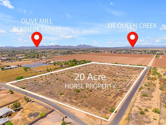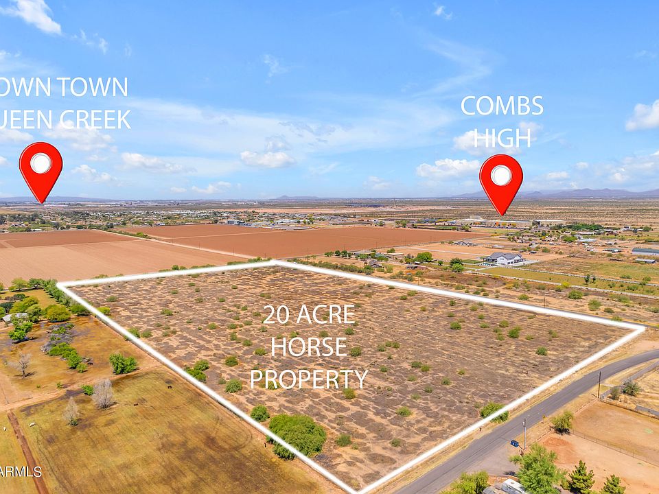 20 acres of irrigated horse property in a prime San Tan Valley location. This lot has SO much potential! Land is zoned for 3.3 acre lots. Split and build your dream home and develop the others. Seller is currently going through the process to split into 4-3.3 acre lots, and 1-6.6 acre lot. Seller is willing to carry with the right terms. Located in a rural community, yet close to shopping, freeways, restaurants, and things to do, this is the perfect spot to build.