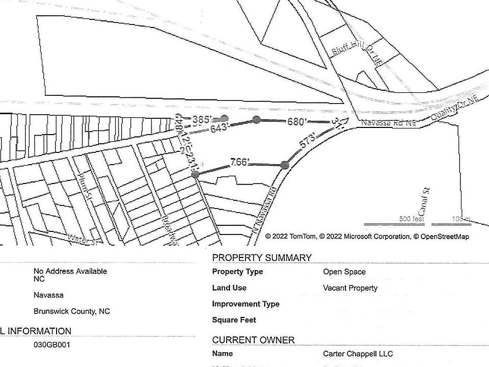 9.11 acres in Navassa of cleared land. This property is bordered on three sides by a public road and is really the gateway to the town of Navassa. There are nine existing sewer taps on the property. Seller has completed the design for 43 homesites that would require a rezoning to r_5