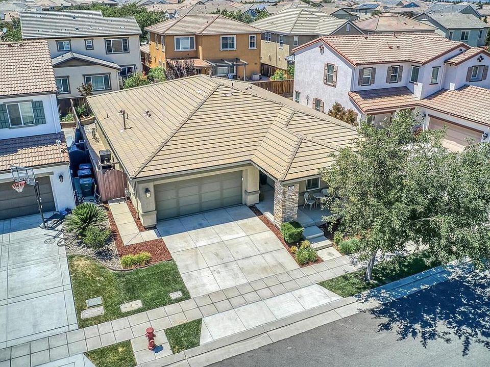 Single story east facing, located in Questa village in the desirable community of Mountain House! Equipped with interior zoned fire alarm with zoned sprinkler system. Bedrooms are pre-wired for ceiling fans, surround sound and TV. Exterior is pre-wired for holiday lights with indoor switch. Home has plantation shutters, white wood blinds, whole house water softener system and a nearly new water heater. The rimless gas fireplace is a stunning decorator feature. The open concept kitchen living room leads out to a stamped concrete backyard surrounding the house and a covered patio. The backyard is a perfect space for low maintenance everyday enjoyment. There is even an orange and a lemon tree. Granite countertops, a water filtration system and a walk in pantry in the kitchen plus breakfast area. Master bedroom suite with walk in closet. Unique Jack and Jill junior bedroom configuration in this east facing well lit and well ventilated floor plan. Renters pay all utilities. No smoking. Pets Ok, but renters will have to pay for annual deep cleaning. When signing lease renters pay 1 month security deposit and the last month rent.
