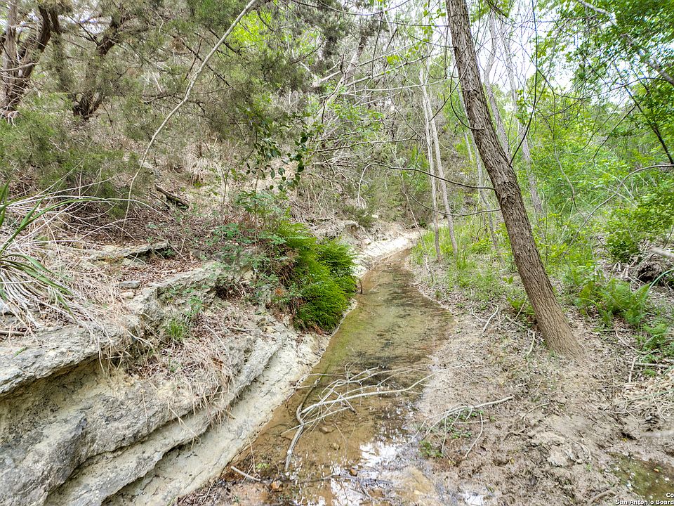 Secluded small acreage with long range views, creek frontage, within easy commuting distance of SA. Los Reyes Creek meanders along west side of the property providing some enticing habitat for wildlife to visit. As you enter the property you go up a gentle slope to a perfect build site with mature hardwood trees and long range hillcountry views. The back half of the property has been left in a more natural state and can be shaped to your liking. Electrical transmission lines on west side of the property. Close to Oak Valley Golf Course.