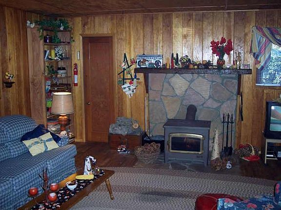 TERRIFIC MOUNTAIN GETAWAY! MAIN HOUSE IS 2 BRM/1BA WITH 2BRM/1B BUNK HOUSE. SITUATED ON THREE LOTS (NEARLY ONE ACRE). ENJOY THE VIEWS FROM IT'S WRAP AROUND DECK. MASSIVE BOULDERS YOU JUST HAVE TO SEE! WOOD STOVES PROVIDE PERFECT HEAT FOR MAIN HOUSE,ELECTRIC HEAT IN BUNK HOUSE. ALL APPLIANCES, STACKED W/D TO STAY. MAY LEAVE SOME FURNITURE TOO. SEPARATE SHED/WORKSHOP. LONGTIME OWNER HAS TAKEN IMMACULATE CARE OF HOME. HARDWOOD FLOORS ADD CHARM TO THIS MOUNTAIN RETREAT!! CALL LISTER FOR AREA INFO.