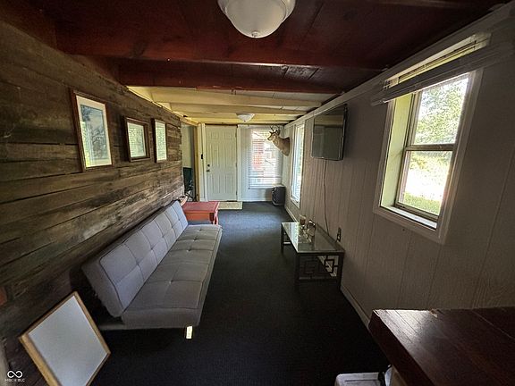 Come checkout this cabin in Gosport! Located right on the White River, just a short walk to hop on your kayak or throw out a fishing line. Very quiet area to get away from the everyday hustle. Power and water can be hooked up very easily, and is set up to run off a generator. Everything you see is included as well. Set up a showing today!