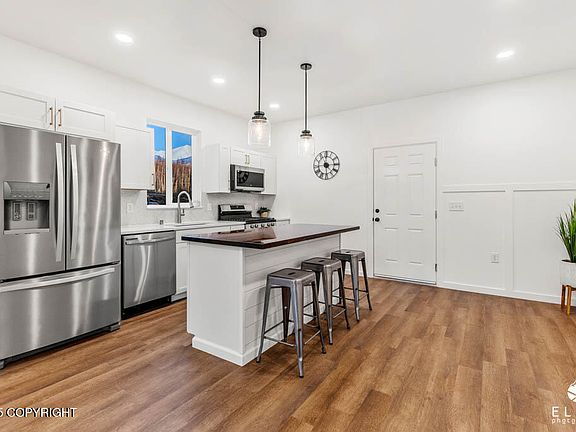 This beautifully crafted newly constructed home includes 2 bedrooms, 2 bathrooms, a spacious bonus room, a large entryway, and an oversized 1-car garage. It also has 9ft ceilings on the main level making it feel very spacious. It is located 5 minutes from downtown Palmer, with paved bike trails thatrun along the Matanuska River just across the street. The property receives ample natural lightand offers mountain views, all while being shaded from most of Palmer's winds. Landscaping will be installed by the builder in spring of 2025 and E Bigfoot and N Unicorn Cir will be paved. The property is part of an active homeowner's association (HOA) that maintains the road, with monthly fees of $50. The house has a private well and septic system. The home is move in ready.
