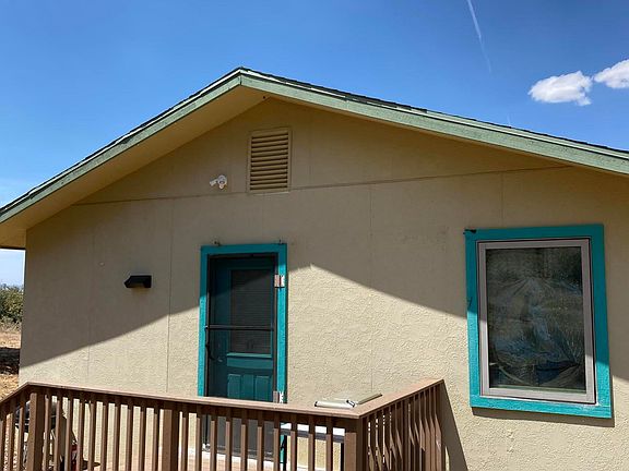Two Homes!!! Rare opportunity to own a green, sustainable retreat away from it all! Nestled beneath Prescott National Forest land, this lovely 2 building complex is off the grid and Eco friendly! Solar, with battery storage and strong producing well. Off-grid, off-road, cash or private financing only. Main Home is a cute673 sf 2 bedrooms, one bathroom home with front porch and big views. 2nd home is approx 700 sf now used for storage-could be garage, workshop or additional living space - has 2 bedrooms and 1 bathroom! Front and back decks for outdoor living, above ground swimming pool, and several organic raised garden beds for growing food. Property located about ~20 from Chino Valley, remote and private! Private Dirt road access, house behind locked gate. This rare gem won't last