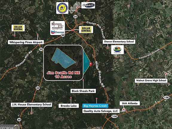 Situated at the intersection of Miller Bottom Road and S Sharon Church Road, this expansive 93.55-acre property offers unparalleled visibility in Rockdale and Walton County. Divided into four distinct parcels - 61.46 acres, 19 acres, 8.34 acres, and 4.75 acres - this land boasts gentle topography and accessibility to water and sewer services. Positioned a mere 10-minute drive from downtown Loganville and just 15 minutes from downtown Conyers, it presents an ideal opportunity for diverse development ventures. 61.46 Acres on Miller Bottom Road (Walton County) Parcel ID/ Tax ID: C0120-013 19.00 Acres on Jim Scaffe Road NE (Rockdale County) Parcel ID/ Tax ID: 081001008A 8.34 Acres on Jim Black Shoals Road NE (Rockdale County) Parcel ID/ Tax ID: 081001008B 4.75 Acres - (Rockdale County) Parcel ID/ Tax ID: 081001008C.