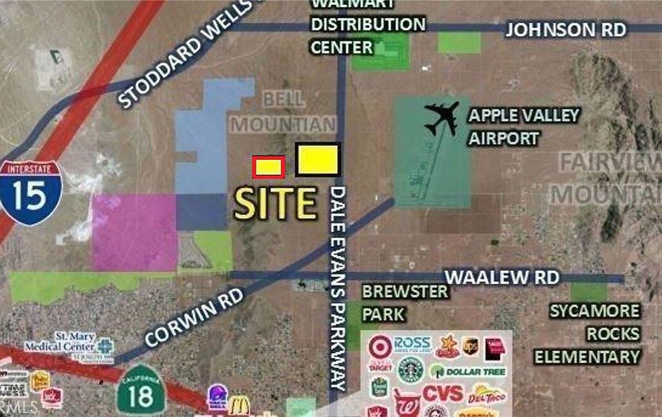 5 ACRE LAND FOR SALE IN APPLE VALLEY!! Only about 2 miles southeast from the I-15 Freeway and Dale Evans & I-15 Interchange where the future site of High-Speed Virgin Train Station to Vegas will be located. The property located near proposed E220 High Desert Corridor which will connect some of the fastest-growing residential, commercial, and industrial areas in Southern California, including the cities of Palmdale, Lancaster, Adelanto, Victorville, and the Town of Apple Valley. Existing development includes Walmart's 1 Million square foot Distribution Center, Big Lots' 1.4 Million square foot Distribution Facility, the Regional Public Safety Training Center, Fresenius Medical Care Distribution Facility, Atlas Van Lines, and Tru Blu Logistics are all located northeast of the subject property. Ameritex Manufacturing Plant is under ongoing construction. This new development will include extensive infrastructure improvements for the area with many new job opportunities. ALSO MIGHT BE A GREAT PROPERTY FOR A LARGE SOLAR FARM PROJECT (buyer to verify). Current zoning is (R-LD) Low-Density Residential (1 du/2.5 to 5 gross acres). However, the town of Apple Valley may consider zoning change based on the development plan (Buyer to verify). A PRIME GOLD MINE LOCATION!! Submit offers today!!