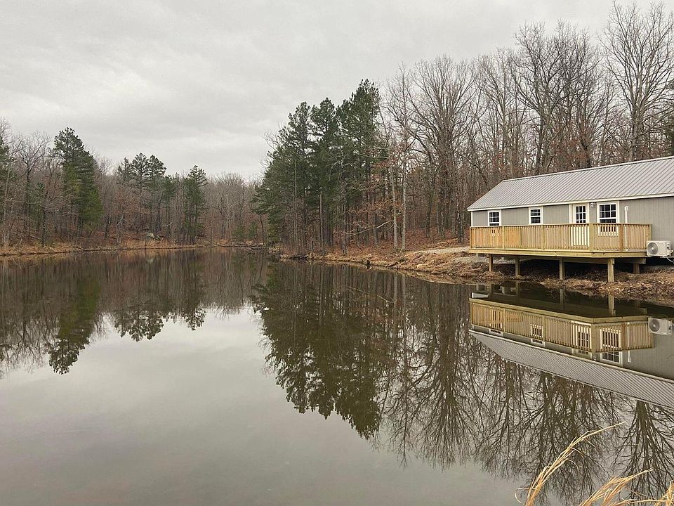 Back on market, no fault of seller. Brand new 16x48 estate cabin with deck overlooking gorgeous 1 1/4 acre stocked lake sitting in the middle of 20 acres. Property address says Salem, but property is closer to Steelville, just 15 minutes south of Steelville and is 1 1/2 hours from St. Louis. Waterfront view with furnished interior. All furniture goes to the buyer. Property can be used as a turn key vacation rental or weekend getaway. Air BNB properties in this area rent out every weekend! Home is two bedroom, 1 full bath, and has a loft. New hot water heater with hookup for washer/dryer. Brand new well & septic. All new construction. See map in last picture. Red outline is property line. Dotted blue line is a 1/2 mile cleared 4 wheeler trail. Solid blue line is lake.