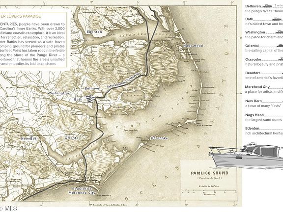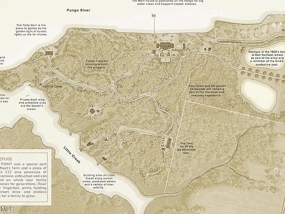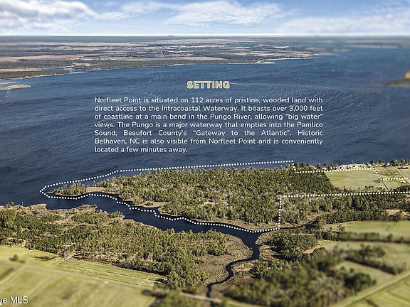 Extraordinary 112-acre waterfront property on the Pungo River with over 3,000 feet of frontage and direct access to the Intracoastal Waterway and Pamlico Sound. Enjoy breathtaking views, private gated access, deep water on Little Creek, and existing permits for a boat ramp, five slips, and bulkhead. Soils support multiple septic sites, offering potential for an incredible private compound or 6-12 large waterfront lots. Minutes from historic Belhaven, with outstanding fishing, hunting, and coastal recreation.