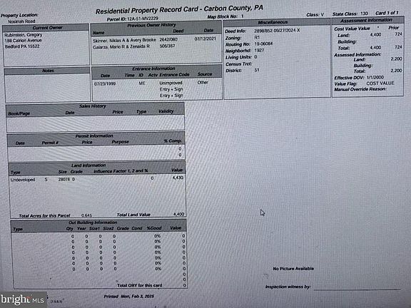 0.645-acre undeveloped residential lot located on Nosirrah Rd in Albrightsville, Carbon County. Zoned R1 (Residential). Quiet setting with wooded surroundings, offering a great opportunity to build a primary residence, vacation home, or hold as an investment. Convenient access to Pocono recreation, lakes, and major routes. Buyer to verify utilities, zoning, and building requirements. NOTE: The property will be sold in AS-IS condition. The buyer is responsible for U&O.