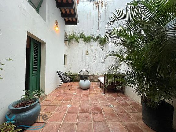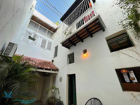 This spacious 2-story property boasts approx 3,176 sq.ft. Features open interior courtyard, high ceilings, balconies & rooftop. Currently divided into two apartments but can be easily converted back into a single family residence. 1st floor includes entrance foyer, living room, family room, equipped kitchen, open patio, 1 bedroom, 1 full bath, laundry. 2nd floor contains large living & dining room, equipped kitchen, bedroom, 1 full bath, 2 balconies and access to rooftop with panoramic views. Other features include cathedral ceilings, marble floors & ample outside space that allow the flow of air & natural light. Walking distance to restaurants, galleries, shops, & other attractions..