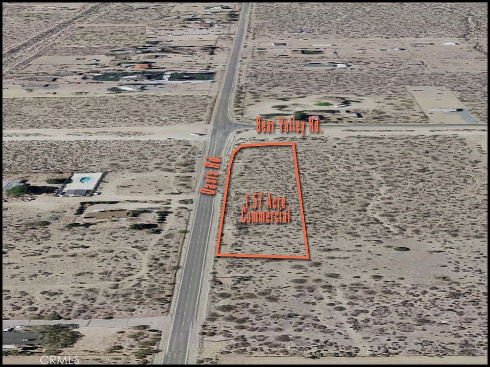 Great opportunity to do commercial business at one of the best spot in Pinon Hills, at the corner of OASIS rd and BEAR VALLEY rd. It's a NEIGHBORHOOD COMMERCIAL PROPERTY around 524 foot frontage on paved OASIS rd. and 124 foot frontage on paved BEAR VALLEY rd. All the utilities(Natural Gas, Electricity, Water) are there. All the 4 corners were marked by a surveyor. Don't miss this great opportunity!!