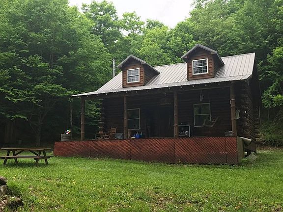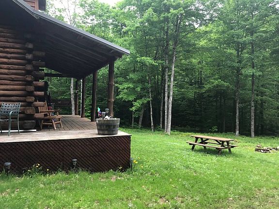 Rustic charm is yours in this wooded setting! This a beautiful, spacious ''true'' log home was built in 2005 and is located in the center of 48.8 acres.It has direct access to ATV and Snowmobile trails.This cabin comes fully furnished. It has a large loft which currently sleeps 12, 1 full bathroom with tiled shower, hardwood floors, full kitchen, large front sitting porch, woodshed and back deck. The house runs on propane. There is a dug well on the property and a small pond. Here you feel like you are in the middle of the forest, yet the blacktop is only 1/4 miles away!