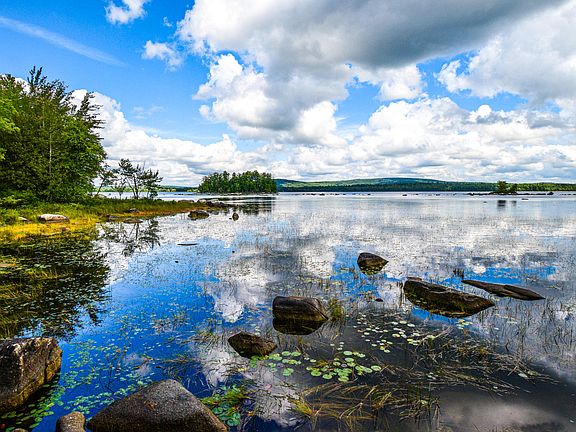 The views are breathtaking from this idyllic 5-acre waterfront lot on one of Maine's most sought-after lakes. Great Moose Lake is a pristine dam-controlled 3856-acre body of water steeped in a history of sport and recreation. This lot is ideal for those seeking a private get-away, buffered by woods and located at the end of a peninsula on a well-maintained private road. Patient grooming of this acreage has resulted in a park-worthy dreamscape where fantastic fishing, boating, swimming, and more await you with clear water and cool, clean breezes. Survey being finalized. Soil tested and seller bringing electric in. Whether you want a place to park your camper, to build a cottage or two, or to establish a stately year-round lakefront retreat -- there are so many possibilities. Great Moose Lake has a public boat landing on Great Moose Lake Drive. WARNING: when you come here you won't want to leave!! Taxes listed are for entire 19 acres owned by seller. 5-acre lot approved but not yet assessed by the town.