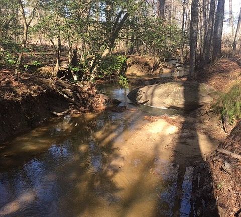 Wooded lot with driveway in place. Cleared home-site on back of lot on hilltop. No HOA, public water, perc tested. This is a beautiful wooded lot with a nice creek, big boulders on the creek edges. Private, quiet, and homesite ready!
