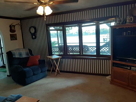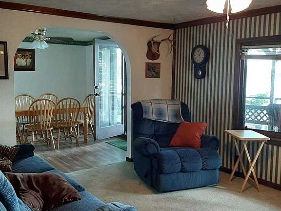 River front cabin with gorgeous views. Perfect site to relax and enjoy life. 2 bedrooms, full bath, large kitchen/dining area, living room has wonderful view of river and leads to a covered deck for outdoor entertaining. Kitchen is fully applianced and sellers are willing to leave beds, sofa, recliner, tv stand and outdoor table and chairs. There is central heat and a/c in main part of house, but no vents in bedrooms. The home is a raised ranch, and the bottom part is enclosed for storage and has a sump pump. The road splits the property. The house sits on south side of road, the north side is farm land. Profit from the farmed land is approximately $125-150 per year. The property has a well and the next door neighbors have used this well in the past, but it is a verbal agreement only. Driveway is shared with neighbor. Property is in flood plain. Property is sold "as is". There is currently a transferable termite contract with Action Pest Control. The septic is located between house and road per previous owner.