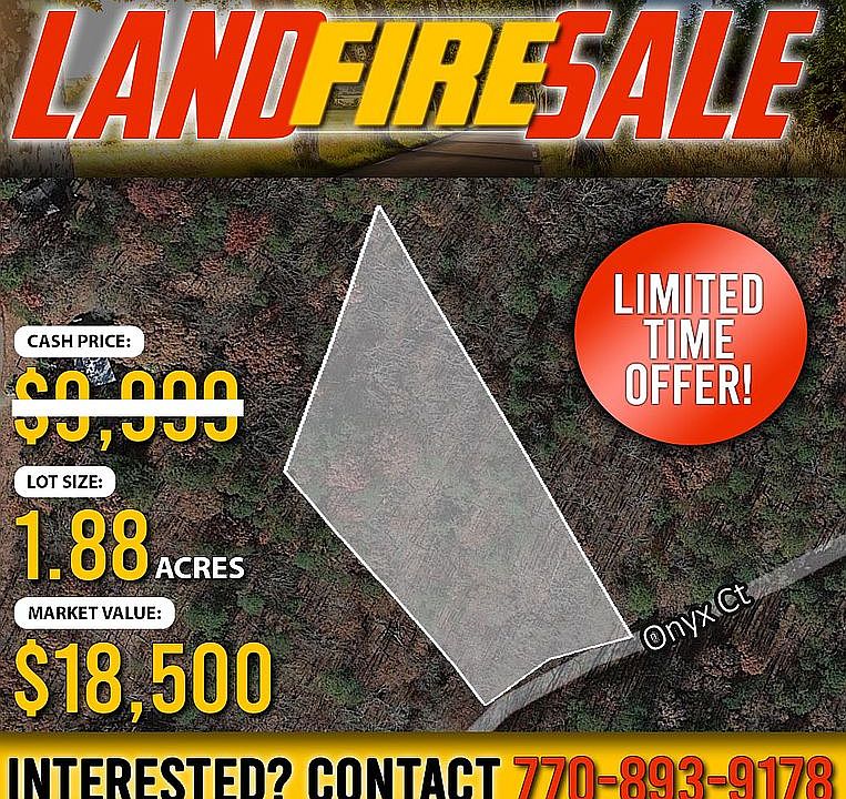Selling OVER 46% BELOW Value, 1.88ac Talking Rock Creek Lot Sale WHY BUY?: #1. Great, Private Location for Your Enjoyment! #2. About 1 hour from Chattanooga,TN, 1.5 hours from Atlanta & 2.5 hours from Athens,TN #3. Multiple Purchase Options Available! Buy this lot through financing $7,999 and $3,275.01 down (down payment includes closing costs) with any of these terms: 36 months with $257.84 payments, 48 months with $213.93 payments, 60 months with $187.89 payments OR use $5,999 cash COMMUNITY DETAILS: Come enjoy some scenic mountain ranges with a touch of lake living on this spacious property! This POA offers superb amenities from a swimming pool, tennis court, lake, and creek access to a playground, clubhouse, and even a trout lodge, and park! This is the perfect spot for your mountain dream home. Start experiencing the advantages of living in a lush natural setting today! Connect with us now to learn more or make an offer. USAGE DETAILS: - Single Family Home PROPERTY DETAILS: - Lot Type - Land - Sale Price - $5,999 - State - Georgia - County - Gordon - Assessor's Parcel Number - 1231-1257 - Property Usage - Single Family Home - Property Address - 1257 Onyx Ct, Ranger, GA 30734 - Association Community & Contact - Talking Rock Creek POA,talkingrockcreekproperties_com - Size - 1.88 Acre(s) - Road Access - Yes, Unpaved - Electricity - At the Street - Water - Public / County connections - Septic - Private - Market Value - Similar lots in the area have sold for up to $22,500 & a 3.89ac lot in the area is listed for $111,112 ACCESS DETAILS: - Onyx Ct is an unpaved road - Lot Address: 1257 Onyx Ct, Ranger, GA 30734 - 1252 Onyx Ct is the address to the neighbors house, which is a house along the same street as the lot. POPULAR ATTRACTIONS: - Fort Mountain State Park, 31 minutes away - Fort Mountain is a sprawling park with camping, and hiking trails, plus an old fort, lake with a beach as well as horseback riding trails. - Heritage Point Regional Park, 32 minutes away - The park offers visitors a large recreation hub with ball fields, a disc-golf course, a playground and a separate dog area. - Rock Garden, 34 minutes away - Rock Garden is a peaceful and very unique place filled with amazing creations that are made up of tiny rocks and pebbles. - Haig Mill Lake Park, 38 minutes away - What a great place to bring your entire family, there something to do for every age! PURCHASE OPTIONS: Purchase this land with cash for $5,999 OR Finance $7,999 and $3,275.01 down (down payment includes closing costs) with any of these terms: 36 months with $257.84 payments, 48 months with $213.93 payments, 60 months with $187.89 payment GOT QUESTIONS? WE HAVE ANSWERS!: - Call/Txt/Email Sandra Jarrett, Salesperson, 770-893-9178, sandra@lindseyandpauley.com with Century 21 Lindsey & Pauley - We may have other properties at bargain prices available. All you have to do is ask! - Don’t hesitate! Connect with us today while this deal is still Available! DISCLAIMER: Buyer must verify & work with County to know what can & can't be done with the land, obtain proper permits if needed & confirm the availability of any utilities needed/serviced on the lots. Seller makes no warranties or representations about the land, its condition, or what can be built on the parcel.