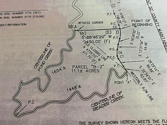 Beautiful wooded creek front property. From the bridge back approx 1400" is Reader Creek, once known by the locals as the coldest creek in the county, then as the property curves back to the right it becomes Pond Creek and it runs the length of the property.