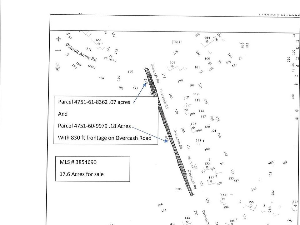 .25 acre strip with 830 feet of frontage on Overcash Rod right at the Ostwalt Amity intersection. Value is purchasing with MLS #3854690 to give road frontage to that parcel on Overcash Rd as well as Arthurs Road. Includes 2 parcels for total .25 acres.