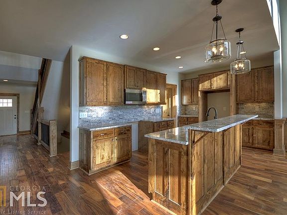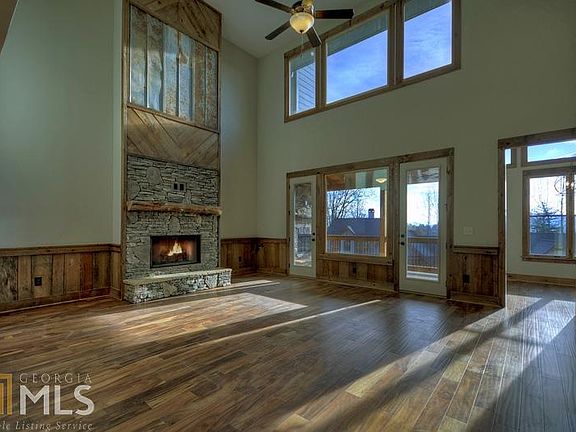 Walking Distance to Historic Downtown Blue Ridge! Exquisite floorplan with stunning upgrades. End Unit, 4 bd/2.5ba "Rustic Chic" townhome w/ a 1 car garage. Amazing master suite on the main level w/ spacious walk-in closet & spa like bath. Sun room, open deck & covered porch extends off the vaulted living area with a stacked stone fireplace. Chef's kitchen features granite countertops, Frigidaire Gallery appliances, working island & pantry. Second level features 2 more bedrooms, Jack & Jill bath, loft & 4 bedroom/bunk room. Rough sawn accents, farm house lighting, custom design tile work, custom cabinetry & hardwood floors throughout. Full unfinished basement could add 1,502sq ft of living space. The Overlook at Blue Ridge features all paved access.