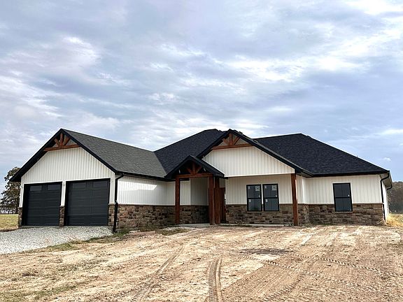Looking for a brand new home, close to town, on a few acres? Look no further! This gorgeous custom built home sits on 3 beautiful acres in the new Ozark Country Estates, just 3 miles from town.This property features 4 bedrooms and 2 1/2 bathrooms, with over 2,200 square foot of living space, and a spacious 2 car garage. You will also find an open living space with a split bedroom floorplan. Enjoy a cup of coffee on the covered front porch, or BBQ for friends and family on the large covered back porch! From the vaulted ceilings, to the huge walk in shower and free standing tub, you wont want to miss checking out this new luxury home.Please keep in mind, this is still under construction and currently being finished, so pictures will be updates as progress continues, or better yet, come take a look in person.